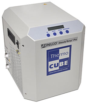 We are now offering PELCO ThermoCUBE, The PELCO Steady Temp™ Pro is specially designed to work in tandem with the PELCO BioWave® Pro+ microwave system. This chiller provides temperature control at the sample level within the microwave chamber. The technology of the PELCO ColdSpot®Pro combined with the PELCO SteadyTemp™ Pro Solid State Chiller offers the unique ability to provide continuous temperature control from 4°C to 80°C. The compact design, fully integrated controls linked to the PELCO BioWave® Pro+ system, and reliable Freon-free technology make the PELCO SteadyTemp™ Pro an essential accessory for any laboratory microwave processing application.